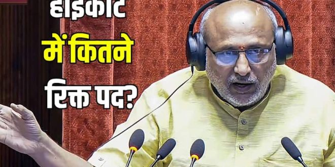 राज्यसभा में सांसद हरीश बीरन द्वारा देशभर में हाईकोर्ट में रिक्त पदों को लेकर जानकारी मांगी गई. पूछा गया कि उच्च न्यायालयों में न्यायाधीशों के मौजूदा रिक्त पदों, सरकार के समक्ष लंबित सर्वोच्च न्यायालय कॉलेजियम की सिफारिशों का विवरण और उनके लंबित रहने के कारण क्या हैं. इसके अलावा क्या सरकार ने देश में लंबित मामलों पर रिक्तियों के प्रभाव का मूल्यांकन किया है. यदि हां, तो इसके विवरण क्या हैं? और विभिन्न अदालतों में इन रिक्तियों को भरने के लिए सरकार द्वारा उठाए गए कदम क्या हैं?