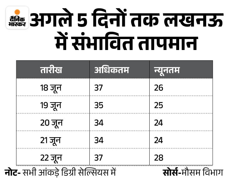 लखनऊ में मानसून के पहुंचने की औसत तारीख 23 जून है। इसके पहले ही मानसून पहुंच जाएगा। इस बीच अगले कुछ दिनों में पारा अधिकतम 32 डिग्री तक दर्ज किया जाएगा।