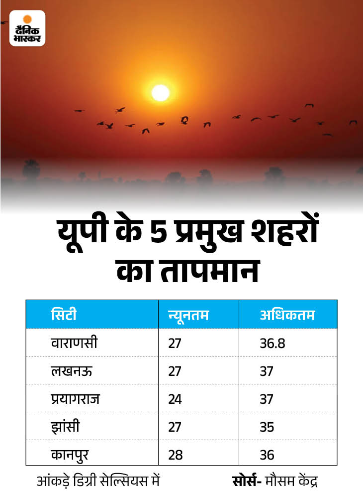 मंगलवार को शहर का अधिकतम तापमान 37.6 डिग्री रहा। यह सामान्य तापमान से 0.4 डिग्री कम था। न्यूनतम तापमान 27.2 डिग्री दर्ज किया गया। यह सामान्य तापमान से 0.2 डिग्री अधिक रहा। दिन में बादल छाए रहने के साथ कई स्थानों पर हल्की बारिश भी हुई।