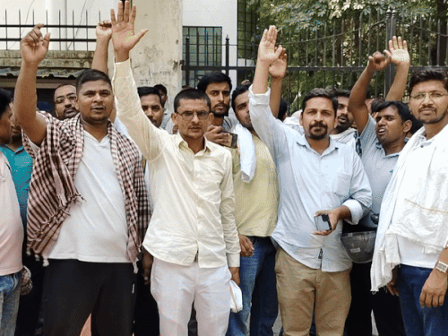 मंगलवार को उप्र शिक्षा सेवा चयन आयोग के बाहर PGT अभ्यर्थियों ने घेराव किया।