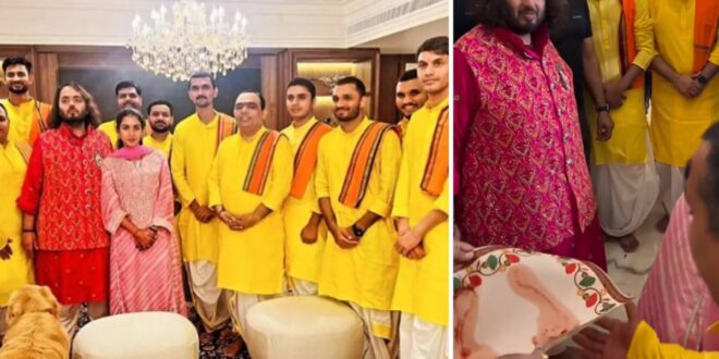 राधिका मर्चेंट और अनंत अंबानी का जामनगर में स्वागत।