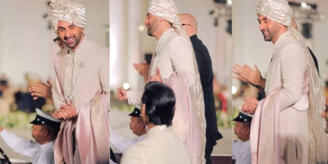 रणबीर कपूर इन दिनों अपनी अपकमिंग फिल्म ‘रामायण’ को लेकर खूब सुर्खियां बटोर रहे हैं। इस चर्चित फिल्म में रणबीर कपूर भगवान श्रीराम के किरदार में दिखाई देंगे। फिल्म से अभिनेता का लुक पहले ही वायरल हो चुका है, जिसके बाद मेकर्स पूरी सावधानी के साथ शूटिंग कर रहे हैं। इस बीच रणबीर कपूर का एक और वीडियो चर्चा में है, जिसमें वह शेरवानी पहने, पगड़ी लगाए दूल्हा बने नजर आ रहे हैं। रणबीर का यह अंदाज उनके फैंस का दिल जीत रहा है। दरअसल, हाल ही में अभिनेता एक इवेंट में शामिल हुए थे, जिसमें उन्होंने दूल्हा बनकर रैंप वॉक की। रणबीर इस फैशन इवेंट के शो स्टॉपर थे।
