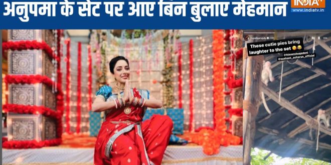 मुंबई। टीवी की दुनिया का रॉकस्टार शो ‘अनुपमा’ की लीड एक्ट्रेस रूपाली गांगुली किसी फिल्मी स्टार से कम नहीं हैं। रूपाली गांगुली की सोशल मीडिया पर भी तगड़ी फैन फॉलोइंग है। इंस्टाग्राम पर ही रूपाली को 3 मिलियन से भी ज्यादा लोग फॉलो करते हैं। रूपाली भी अपने फैन्स के लिए फोटो और वीडियो शेयर करती रहती हैं। हाल ही में रूपाली गांगुली ने अपने शो अनुपमा से शूटिंग सेट से एक मजेदार वीडियो शेयर किया है। इस वीडियो में रूपाली ने बताया कि उनके सेट पर बिन बुलाए मेहमानों ने धावा बोल दिया है। इस वीडियो में छोटे बंदरों को छत पर मस्ती करते हुए देखा जा सकता है। जैसे-जैसे यह मनमोहक वीडियो आगे बढ़ती है, रूपाली को शाहरुख खान और प्रीति जिंटा अभिनीत 2004 की रोमांटिक फिल्म ‘वीर-ज़ारा’ से मैं यहां हूं गाते हुए सुना जा सकता है। उन्होंने वीडियो को कैप्शन दिया, ‘ये सब सेट पर हंसी लाते हैं।’